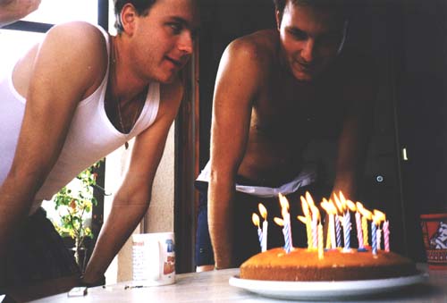 Finalmente convencidos de que aquele era mesmo o bolo e as velas certas, os dois aniversariantes Thomas e Christian se preparam para a façanha maior nesse dia... A hora do sopro!