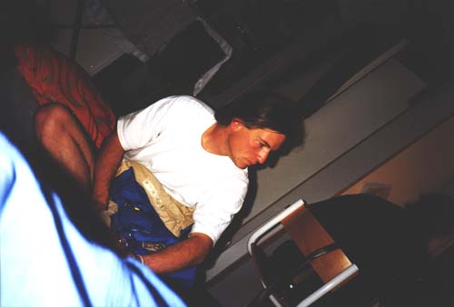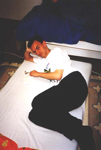 Na casa do Florian, Tim da uma cochilada. Aqui está ele, totalmente desnorteado, logo depois de acordar: